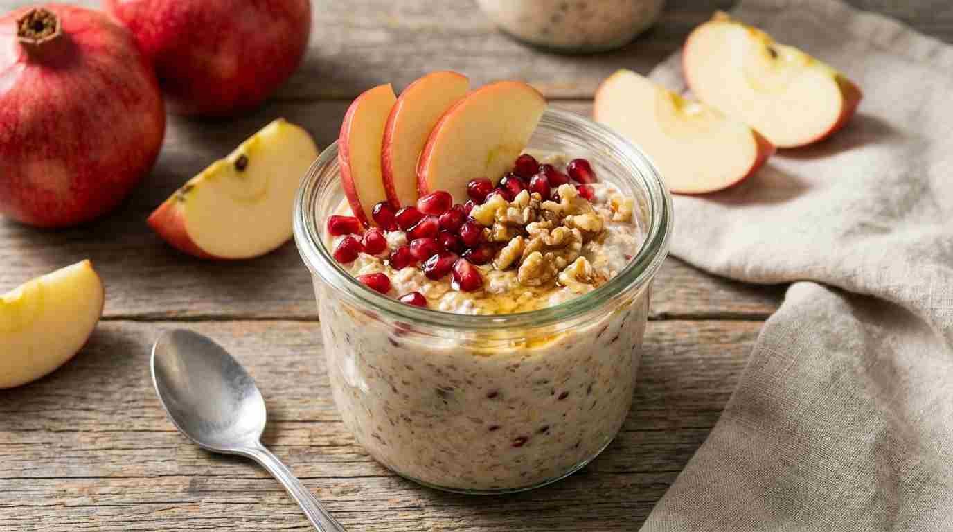 These overnight oats combine crisp apples with tangy pomegranate for a naturally sweet and refreshing flavor. Fiber-rich oats help keep you full, while the contrast between sweet and tart fruits adds depth. For the best taste, choose sweeter apple varieties like Honeycrisp, Fuji, or Gala.