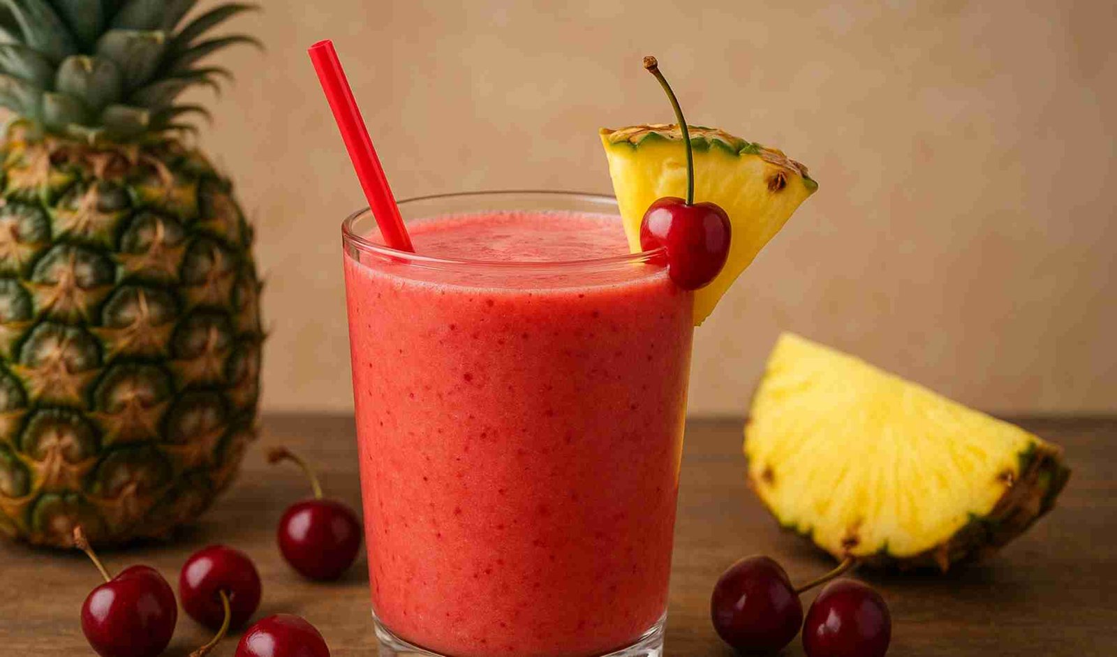 Cherries are rich in vitamins and polyphenols that may help reduce inflammation. In this smoothie, tart pomegranate-cherry juice pairs beautifully with sweet crushed pineapple and creamy yogurt, creating a balanced blend of sweet and tangy flavors.