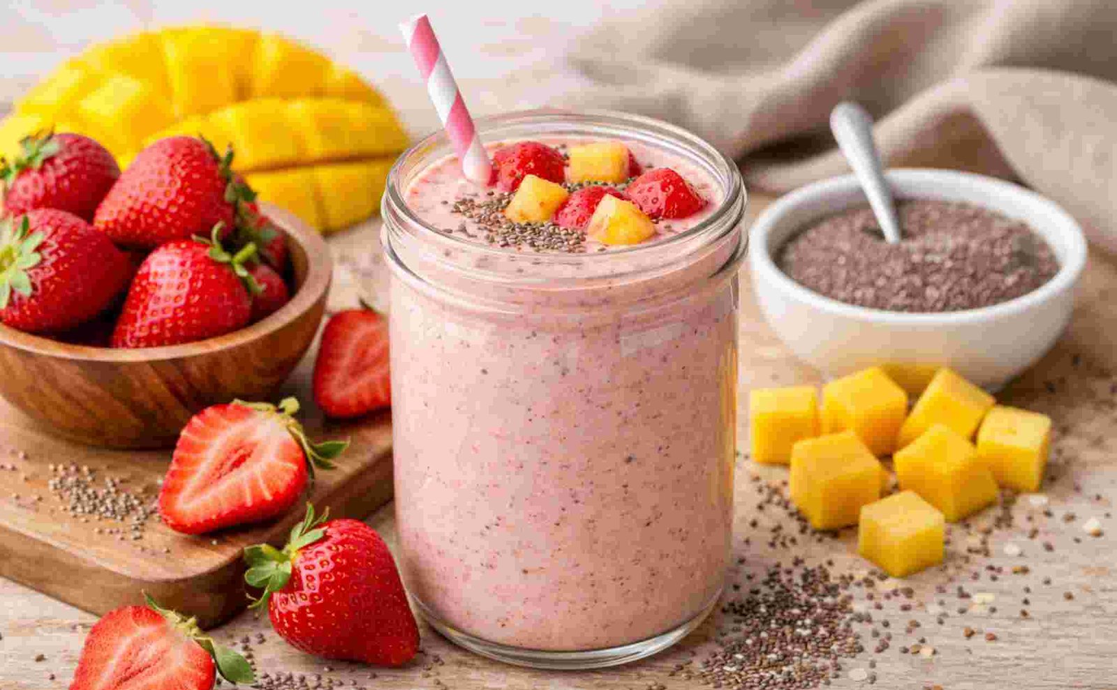 This strawberry-mango smoothie is packed with nutrients, including fiber, antioxidants, and omega-3 fats from chia seeds. Using frozen fruit creates a thick, refreshing texture—just add a little extra almond milk to ensure everything blends smoothly.