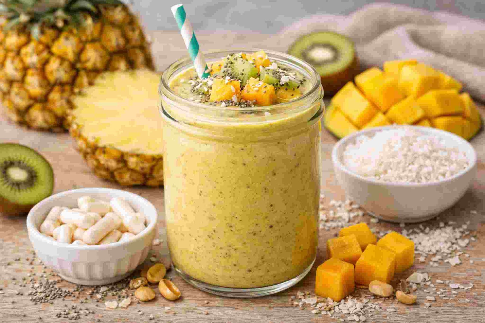 This bright green smoothie is a refreshing way to begin the day. Spinach blends smoothly into the mix without overpowering the flavor, allowing the sweetness of banana, mango, and pineapple to shine. The result is a creamy, tropical-tasting drink that feels light yet satisfying.
